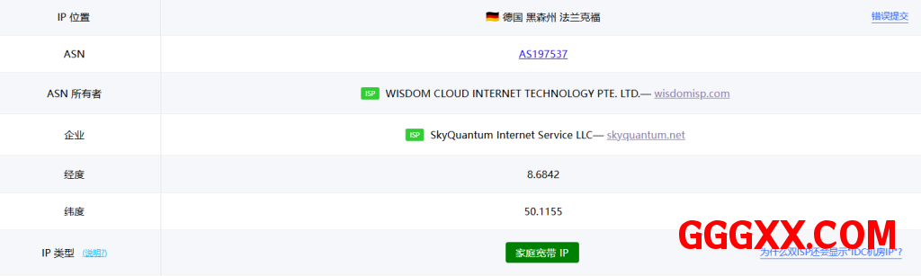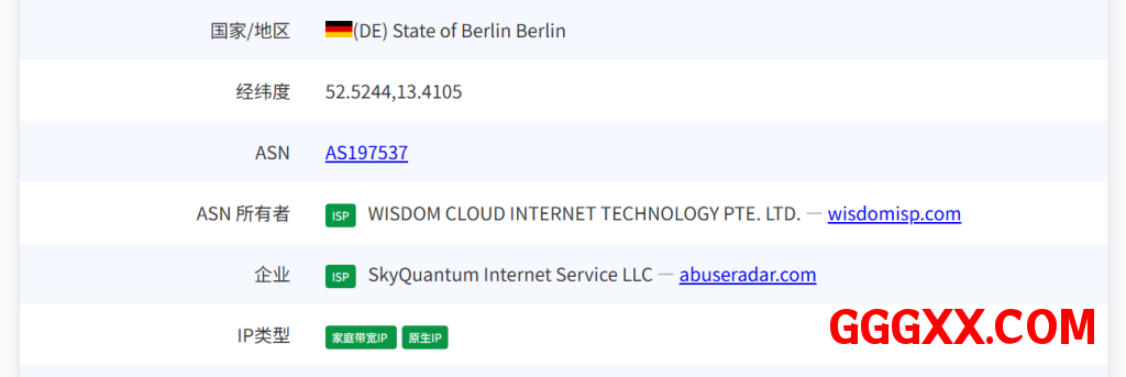 国家: DE 城市: Berlin 服务商: AS197537 WISDOM CLOUD INTERNET TECHNOLOGY PTE. LTD.