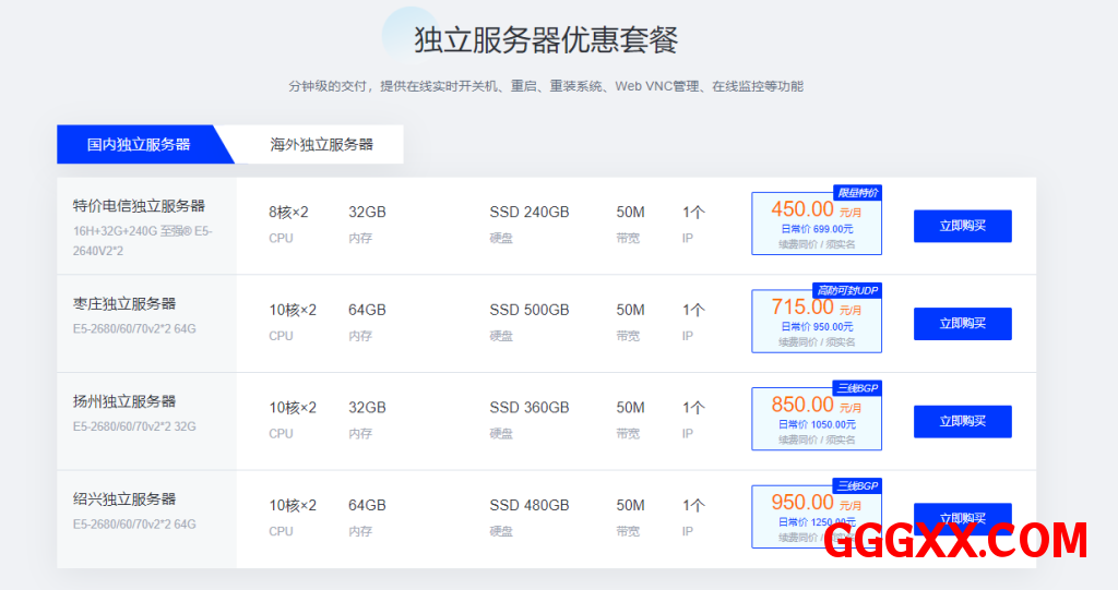 独立服务器优惠套餐