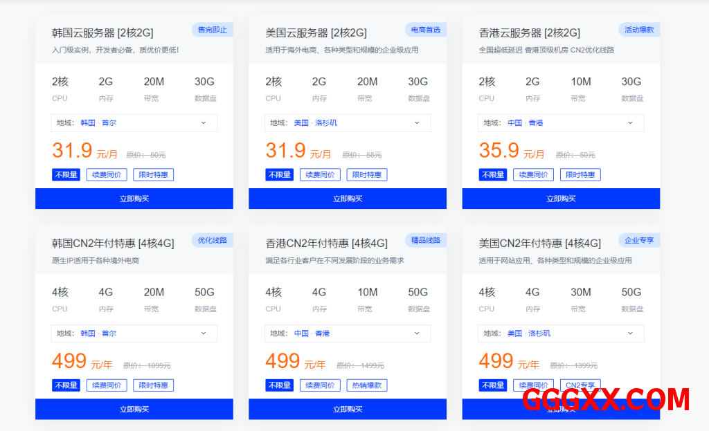 | 4核 | 4G | 50G | 20Mbps | 韩国 | 499/年 | 链接 |