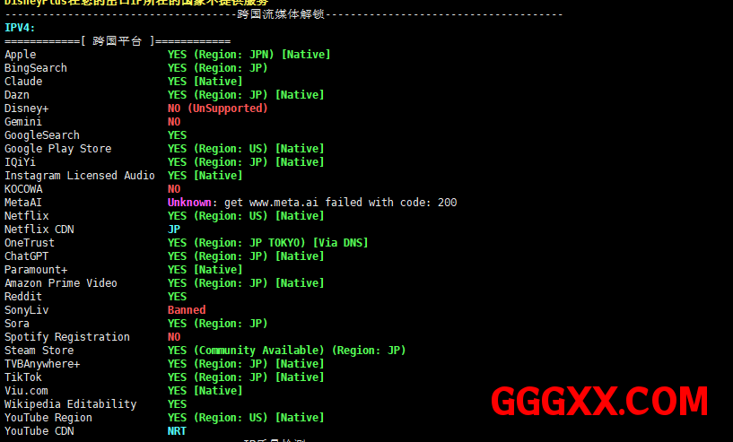 流媒体解锁测试