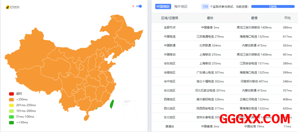 中国香港 199.62Mbps 182.50Mbps 3.11ms