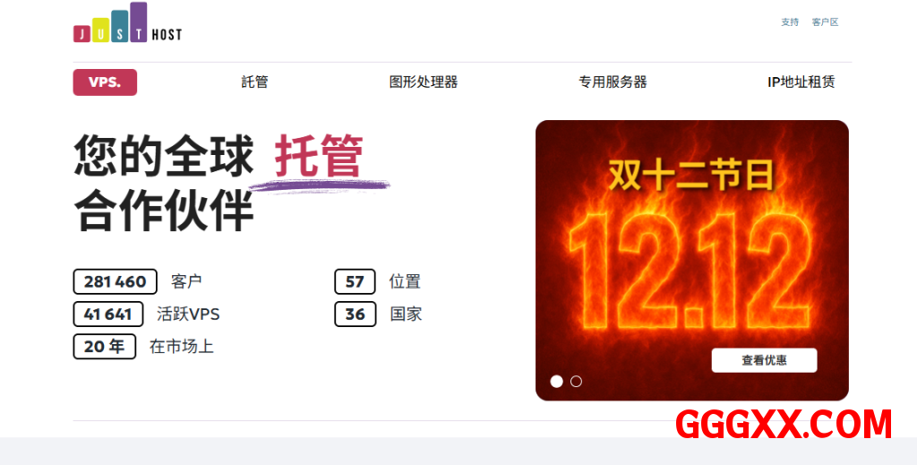 从现在开始到12月21日,justhost对中国区客户开启双十二特特促销,低至5折优惠,可选机房有:美国(西雅图、达拉斯)、德国、荷兰、瑞士、芬兰。VPS为KVM虚拟,NVMe硬盘,支持在不同机房之间切换(更换IP),根据配置从低到高给与300~750Mbps带宽,不限制流量随便跑。付款方式支持:信用卡、20多种加密货币、PayPal、支付宝、银联、PerfectMoney,15天退款保证。