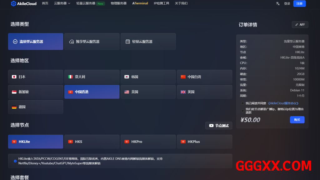 Akile,国内商家,主要提供KVM VPS,数据中心有香港、日本、新加坡、台湾、洛杉矶、韩国等等。下面是香港/国际线路线路的KVM VPS,特色是不限流量,共享带宽(运行在10G口母鸡上,高级竞技场全靠本事抢)。HKLite接入TATA/PCCW/COGENT/EIE等网络,国际互联优秀,内置AKILE DNS香港内网解锁流媒体解锁,支持Netflix/Disney+/Youtube/ChatGPT/MytvSuper等流媒体解锁。