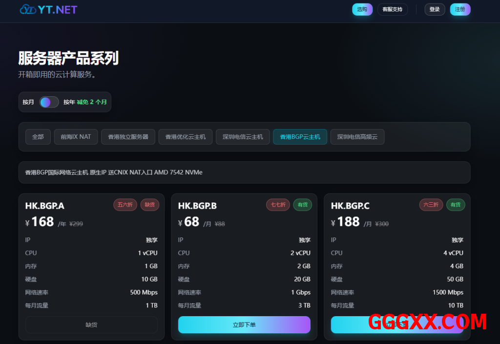 云途/yt.net新增了香港BGP线路的VPS/云服务器,特别要说明的是这是国际BGP线路!该系列的VPS自带一个香港原生IPv4,免费送50个CNIX入口,服务器采用AMD EPYC 7542、DDR4、NVMe SSD阵列,单个VM最高网络速率1500Mbps。